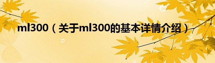 本文关于ml300的基本详情介绍就讲解完毕,希望对大家有所帮助。