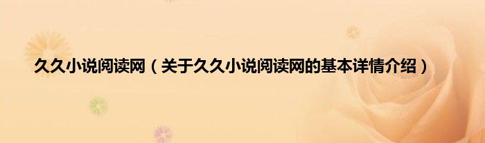 本文关于久久小说阅读网的基本详情介绍就讲解完毕,希望对大家有所帮助。