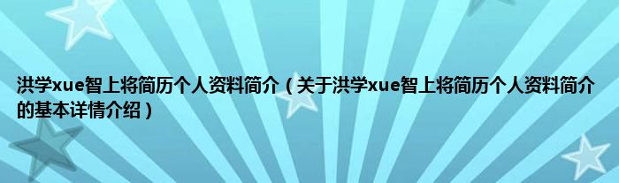 本文关于洪学xue智上将简历个人资料简介的基本详情介绍就讲解完毕,希望对大家有所帮助。