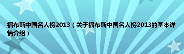 本文关于福布斯中国名人榜2013的基本详情介绍就讲解完毕,希望对大家有所帮助。