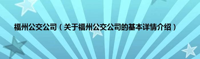 本文关于福州公交公司的基本详情介绍就讲解完毕,希望对大家有所帮助。