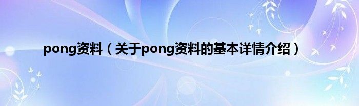 本文关于pong资料的基本详情介绍就讲解完毕,希望对大家有所帮助。