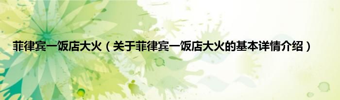 本文关于菲律宾一饭店大火的基本详情介绍就讲解完毕,希望对大家有所帮助。