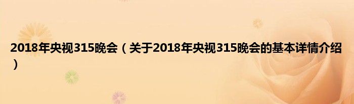 本文关于2018年央视315晚会的基本详情介绍就讲解完毕,希望对大家有所帮助。