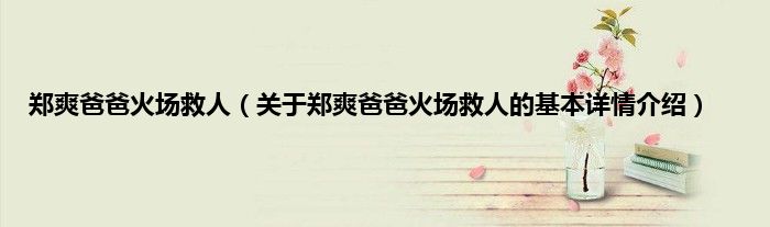 本文关于郑爽爸爸火场救人的基本详情介绍就讲解完毕,希望对大家有所帮助。