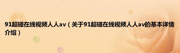 本文关于91超碰在线视频人人av的基本详情介绍就讲解完毕,希望对大家有所帮助。