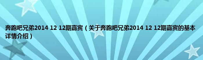 本文关于奔跑吧兄弟2014 12 12期嘉宾的基本详情介绍就讲解完毕,希望对大家有所帮助。