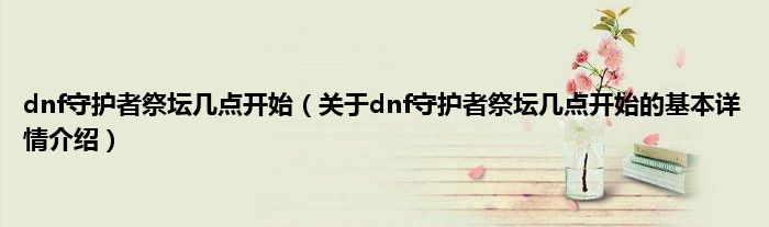 本文关于dnf守护者祭坛几点开始的基本详情介绍就讲解完毕,希望对大家有所帮助。