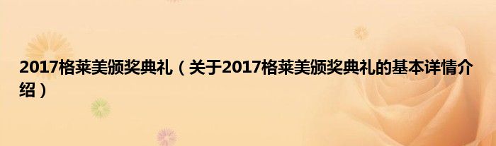 本文关于2017格莱美颁奖典礼的基本详情介绍就讲解完毕,希望对大家有所帮助。