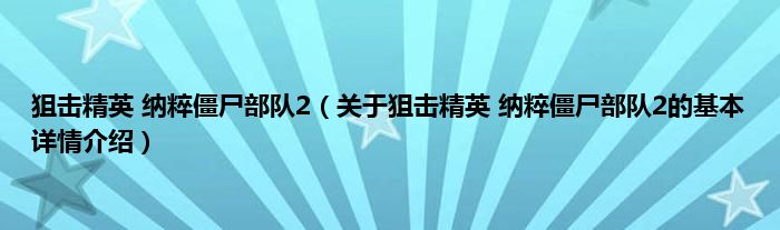 本文关于狙击精英 纳粹僵尸部队2的基本详情介绍就讲解完毕,希望对大家有所帮助。