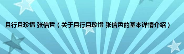 本文关于且行且珍惜 张信哲的基本详情介绍就讲解完毕,希望对大家有所帮助。