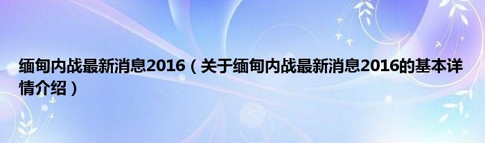 本文关于缅甸内战最新消息2016的基本详情介绍就讲解完毕,希望对大家有所帮助。