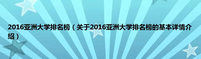 本文关于2016亚洲大学排名榜的基本详情介绍就讲解完毕,希望对大家有所帮助。