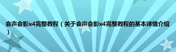 本文关于会声会影x4完整教程的基本详情介绍就讲解完毕,希望对大家有所帮助。