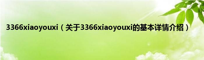 本文关于3366xiaoyouxi的基本详情介绍就讲解完毕,希望对大家有所帮助。
