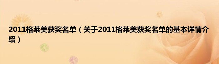 本文关于2011格莱美获奖名单的基本详情介绍就讲解完毕,希望对大家有所帮助。