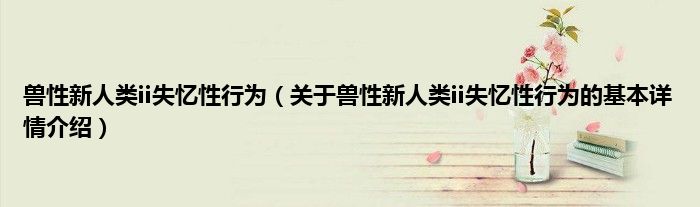 本文关于兽性新人类ii失忆性行为的基本详情介绍就讲解完毕,希望对大家有所帮助。