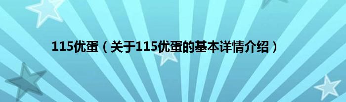 大家好我是小蝌蚪,115优蛋,关于115优蛋的基本详情介绍很多人还不知道,那么现在让我们一起来看看吧!
