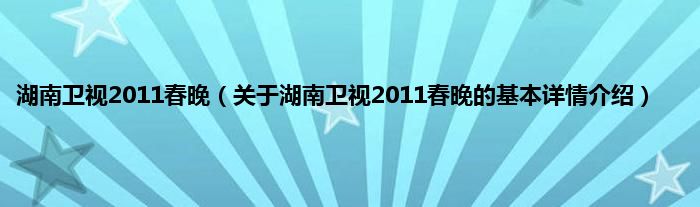 本文关于湖南卫视2011春晚的基本详情介绍就讲解完毕,希望对大家有所帮助。