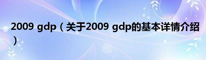 本文关于2009 gdp的基本详情介绍就讲解完毕,希望对大家有所帮助。