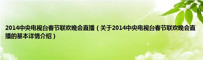 本文关于2014中央电视台春节联欢晚会直播的基本详情介绍就讲解完毕,希望对大家有所帮助。