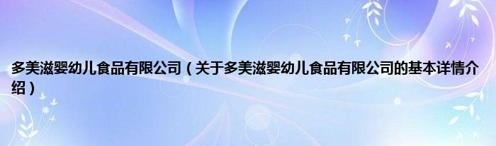 本文关于多美滋婴幼儿食品有限公司的基本详情介绍就讲解完毕,希望对大家有所帮助。