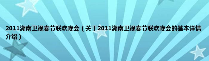 本文关于2011湖南卫视春节联欢晚会的基本详情介绍就讲解完毕,希望对大家有所帮助。