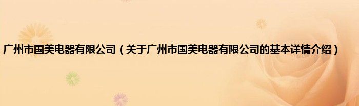 本文关于广州市国美电器有限公司的基本详情介绍就讲解完毕,希望对大家有所帮助。