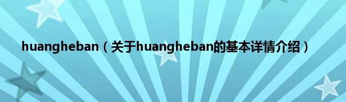 本文关于huangheban的基本详情介绍就讲解完毕,希望对大家有所帮助。