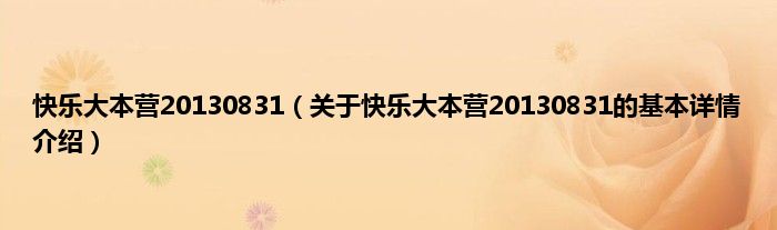 本文关于快乐大本营20130831的基本详情介绍就讲解完毕,希望对大家有所帮助。