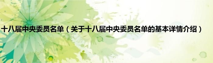本文关于十八届中央委员名单的基本详情介绍就讲解完毕,希望对大家有所帮助。