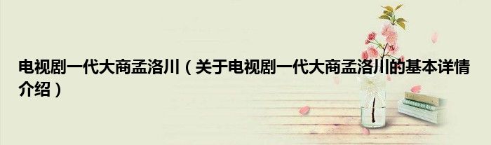 本文关于电视剧一代大商孟洛川的基本详情介绍就讲解完毕,希望对大家有所帮助。