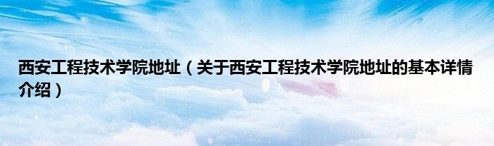 本文关于西安工程技术学院地址的基本详情介绍就讲解完毕,希望对大家有所帮助。