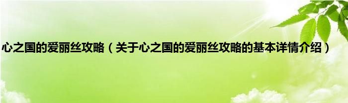 本文关于心之国的爱丽丝攻略的基本详情介绍就讲解完毕,希望对大家有所帮助。