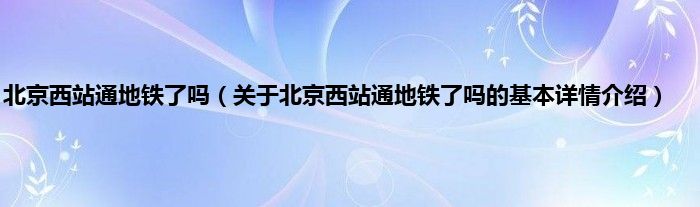 本文关于北京西站通地铁了吗的基本详情介绍就讲解完毕,希望对大家有所帮助。