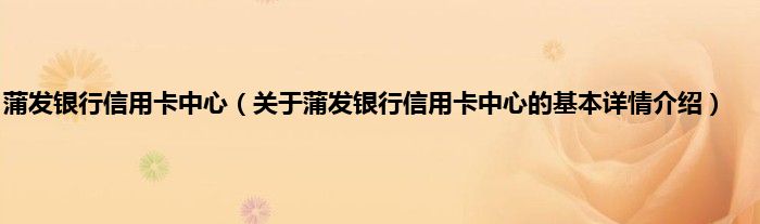 本文关于蒲发银行信用卡中心的基本详情介绍就讲解完毕,希望对大家有所帮助。