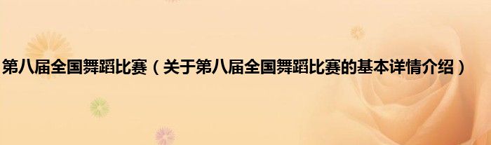 本文关于第八届全国舞蹈比赛的基本详情介绍就讲解完毕,希望对大家有所帮助。