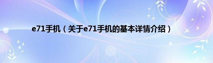 本文关于e71手机的基本详情介绍就讲解完毕,希望对大家有所帮助。