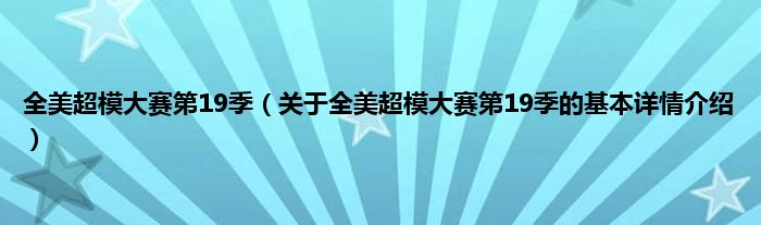 本文关于全美超模大赛第19季的基本详情介绍就讲解完毕,希望对大家有所帮助。