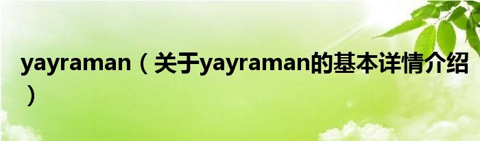 本文关于yayraman的基本详情介绍就讲解完毕,希望对大家有所帮助。
