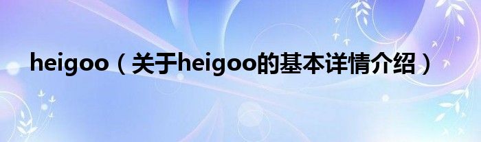 heigoo(关于heigoo的基本详情介绍)