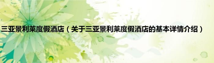 本文关于三亚景利莱度假酒店的基本详情介绍就讲解完毕,希望对大家有所帮助。