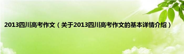 本文关于2013四川高考作文的基本详情介绍就讲解完毕,希望对大家有所帮助。