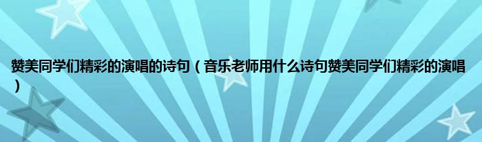 以上就是【赞美同学们精彩的演唱的诗句,音乐老师用什么诗句赞美同学们精彩的演唱】相关内容。