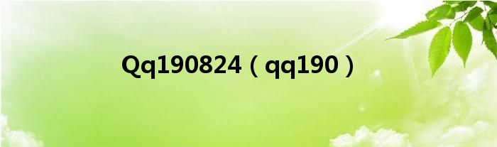 大家好,小问来为大家解答以上问题。Qq190824,qq190这个很多人还不知道,现在让我们一起来看看吧!