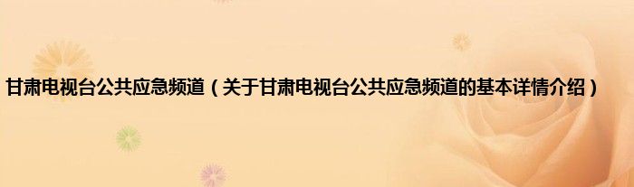 本文关于甘肃电视台公共应急频道的基本详情介绍就讲解完毕,希望对大家有所帮助。