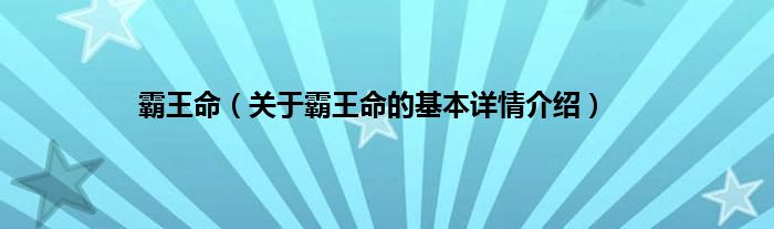 本文关于霸王命的基本详情介绍就讲解完毕,希望对大家有所帮助。