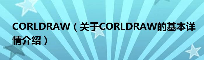 CORLDRAW(关于CORLDRAW的基本详情介绍)