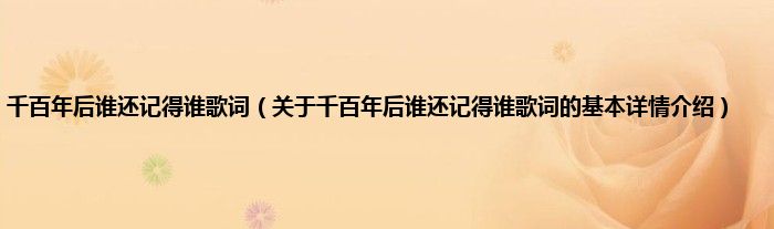 本文关于千百年后谁还记得谁歌词的基本详情介绍就讲解完毕,希望对大家有所帮助。