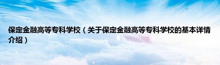 本文关于保定金融高等专科学校的基本详情介绍就讲解完毕,希望对大家有所帮助。